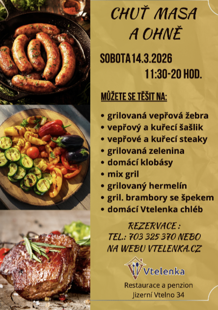 Grilovačka ve Vtelence - 14. března 2026, 11:30 @ Restaurace a penzion Vtelenka, Jizerní Vtelno | Kam večer? - Mladá Boleslav