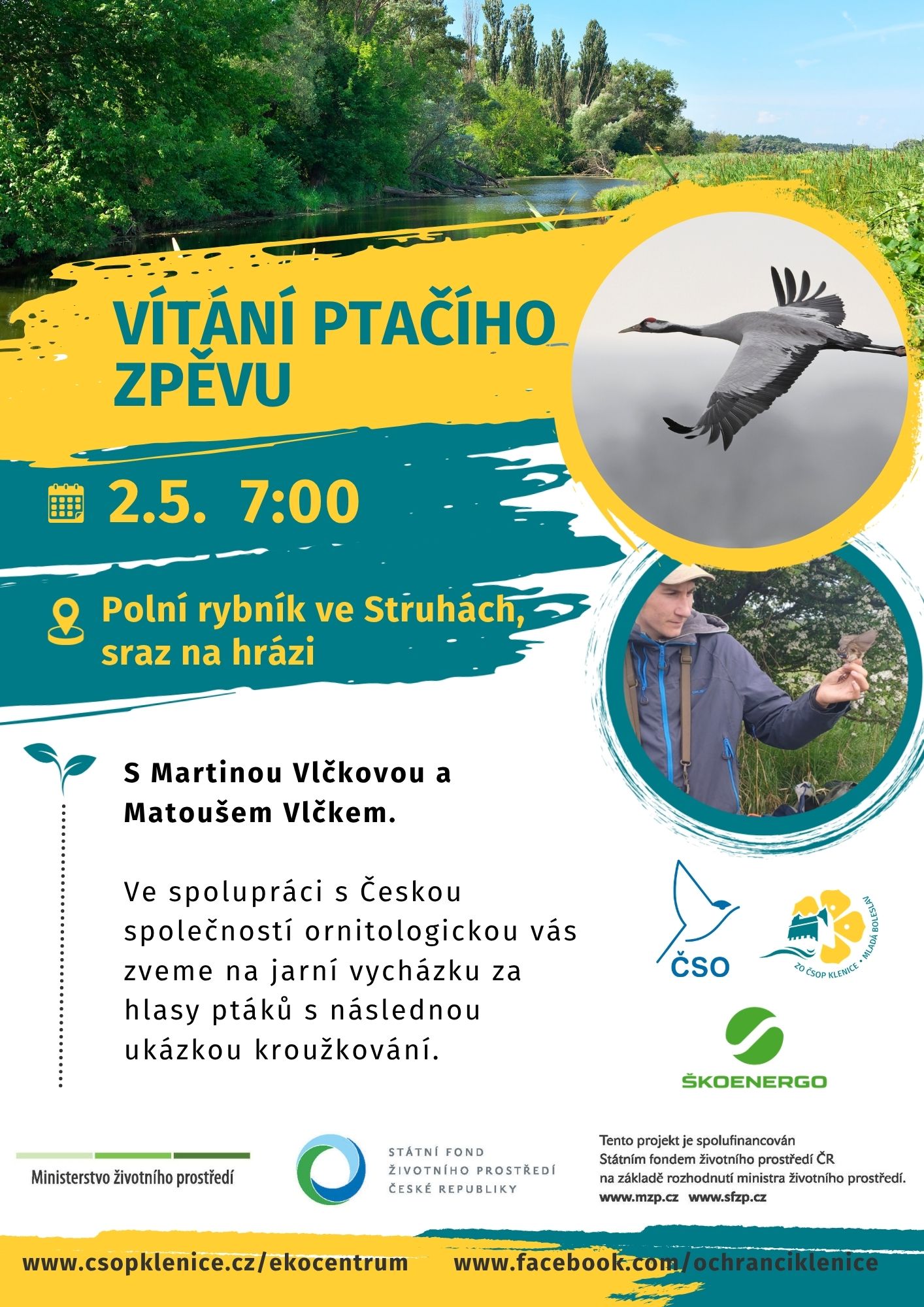 Ve spolupráci s Českou společností ornitologickou vás zveme na jarní vycházku za hlasy ptáků s následnou ukázkou kroužkování.